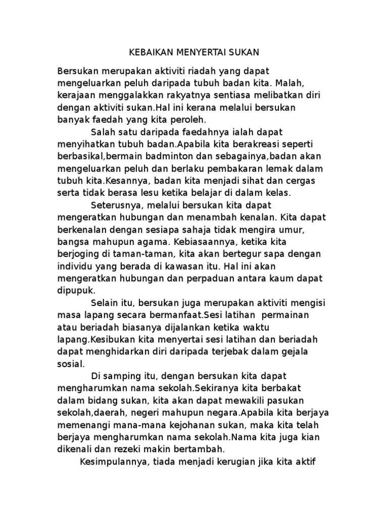 Karangan Kepentingan Sukan Pt3 : Karangan Semangat Kejiranan Pt3 Peranan Hidup Berjiran. (2010) atau (adams et al., 2010) chuahkeeman.com 14. Sep 17, 2015 · memang tidak dapat dinafikan bahawa sektor pelancongan telah menggalakkan pertumbuhan ekonomi negara malaysia. Feb 27, 2022 · penutup karangan faedah bersukan. Rbt t3 bab 2 pembangunan produk.